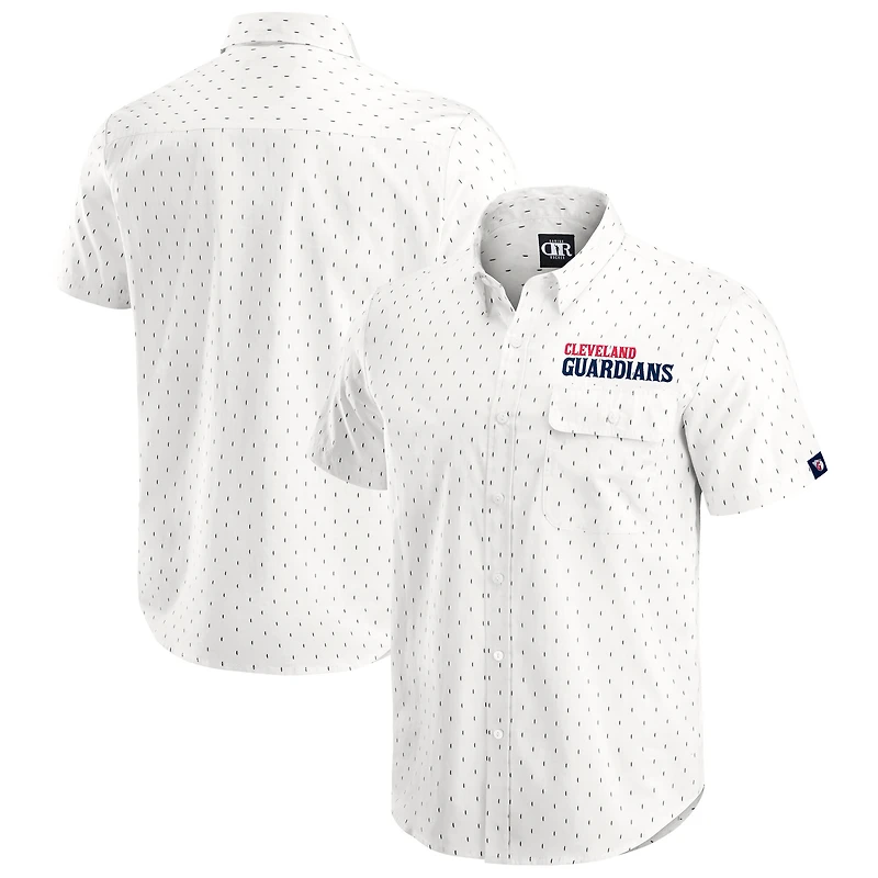 Channel your love for the Cleveland Guardians with this stylish Printed Button-Down Shirt from the Darius Rucker Collection by Fanatics. This breezy 100% cotton button-down top features an eye-catching all-over sublimated dot design that's sure to turn heads. The embroidered team wordmark at the left chest provides a subtle yet stylish touch, making it clear which team you're rooting for.