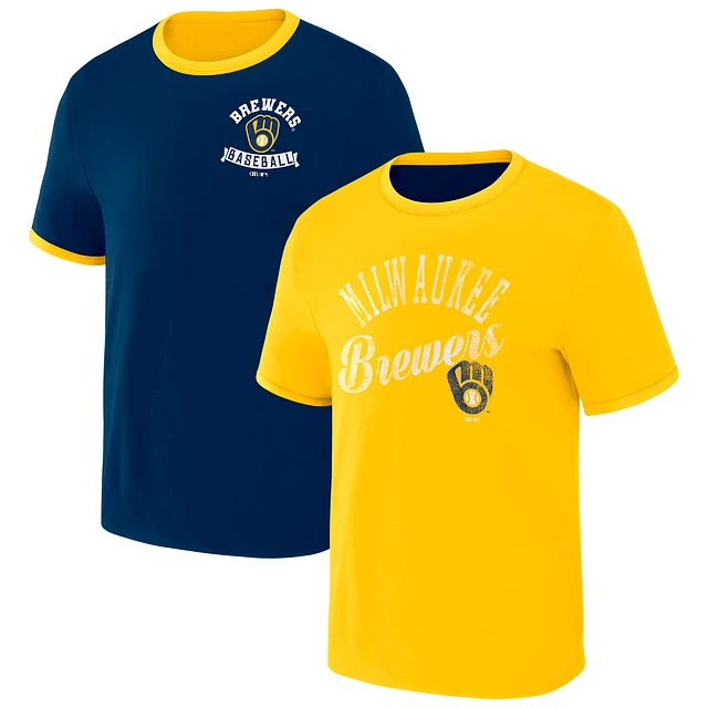 Men's Darius Rucker Collection by Fanatics Navy/Gold Milwaukee Brewers Two-Way Ringer Reversible T-Shirt