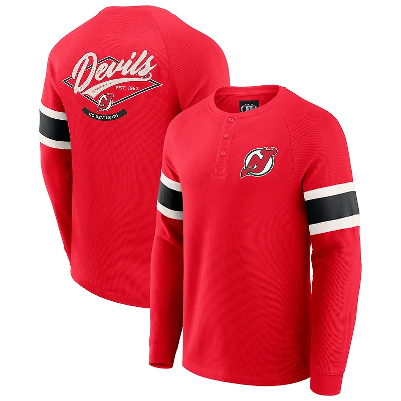 Show your timeless love for the New Jersey Devils with this Waffle-Knit Raglan Long Sleeve Henley T-Shirt from the Darius Rucker Collection by Fanatics. With waffle-knit fabric for a cozy and comfortable feel, this New Jersey Devils tee is perfect for cooler game days or casual outings. Raglan sleeves offer greater freedom of movement in the shoulders and arms, ensuring unrestricted comfort whether you're cheering from the stands or lounging at home.