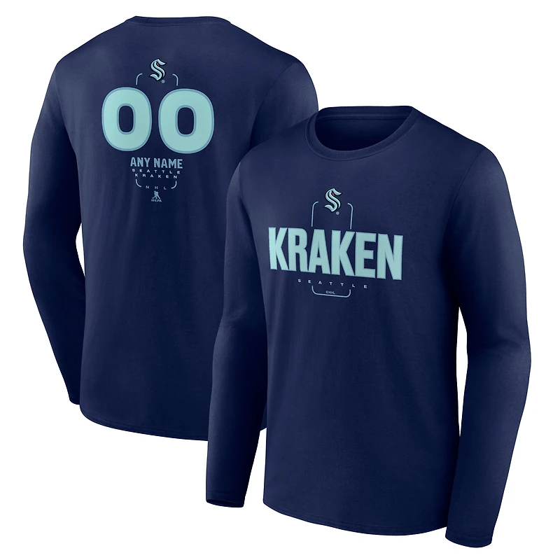 We want fans to celebrate their fandom by customizing and personalizing certain products. For these customizable products, including jerseys, we invite customers to tell us how they would like their preferred name or other text to appear by typing that text into the field indicated. However, just because a customer is able to type proposed customization text into the field and is able to complete the order through the website, not all proposed customization text will be accepted. Please note, Fanatics may reject and cancel any customization order for any reason, including for messages that are deemed offensive or inappropriate. This Seattle Kraken Custom Midfielder Long Sleeve T-Shirt offers a comfortable and classic fit as well as spectacular graphics on the chest and back.