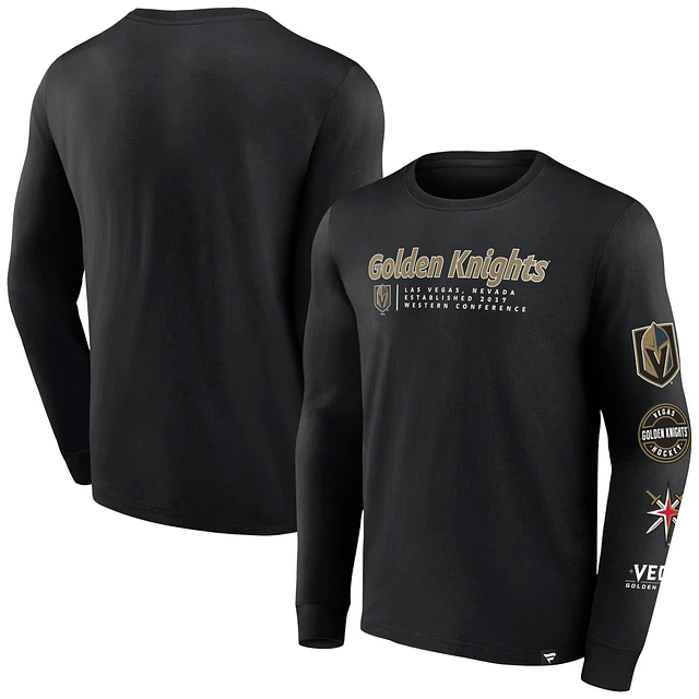 Men's Fanatics Black Vegas Golden Knights Strike the Goal Long Sleeve T-Shirt