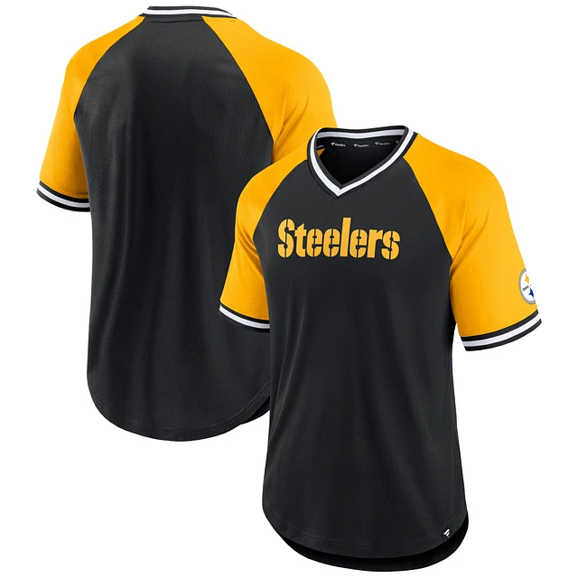 Men's Fanatics Black/Gold Pittsburgh Steelers Second Wind V-Neck Raglan T-Shirt