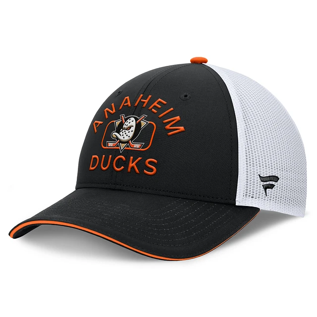 Men's Fanatics Black/White Anaheim Ducks Authentic Pro Rink Trucker Hat
