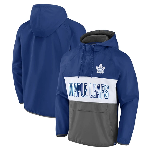 Men's Fanatics Blue Toronto Maple Leafs Backhand Shooter Anorak Raglan Quarter-Zip - Hoodie Jacket