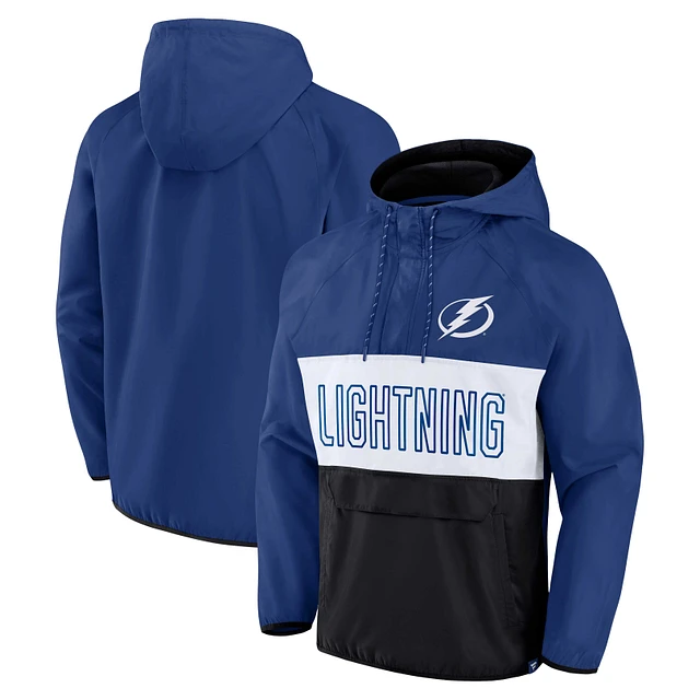 Men's Fanatics Blue/Black Tampa Bay Lightning Backhand Shooter Defender Anorak Raglan Hoodie Quarter-Zip Jacket