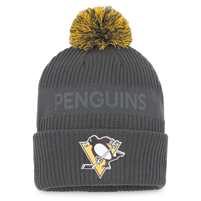 Men's Fanatics Charcoal Pittsburgh Penguins Authentic Pro Home Ice Cuffed Knit Hat with Pom