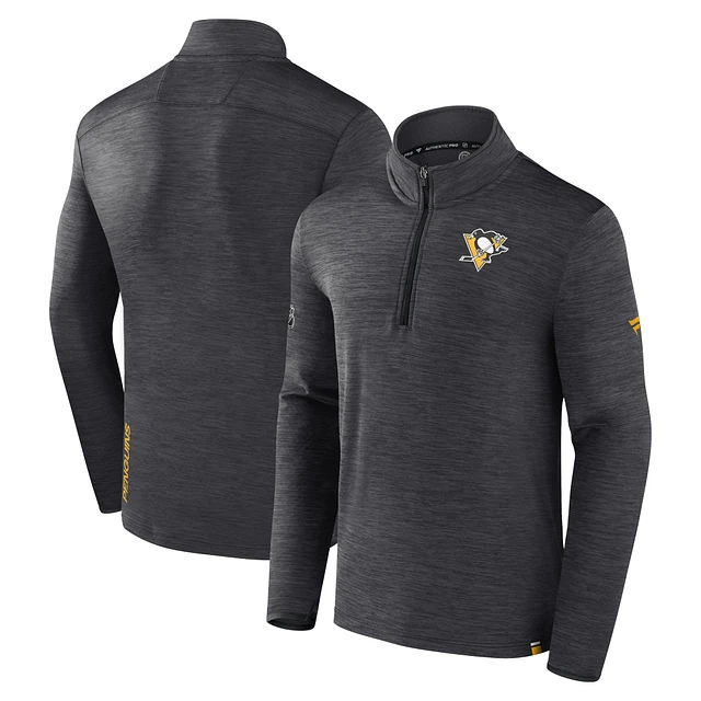 Men's Fanatics Charcoal Pittsburgh Penguins Authentic Pro Quarter-Zip Pullover Top