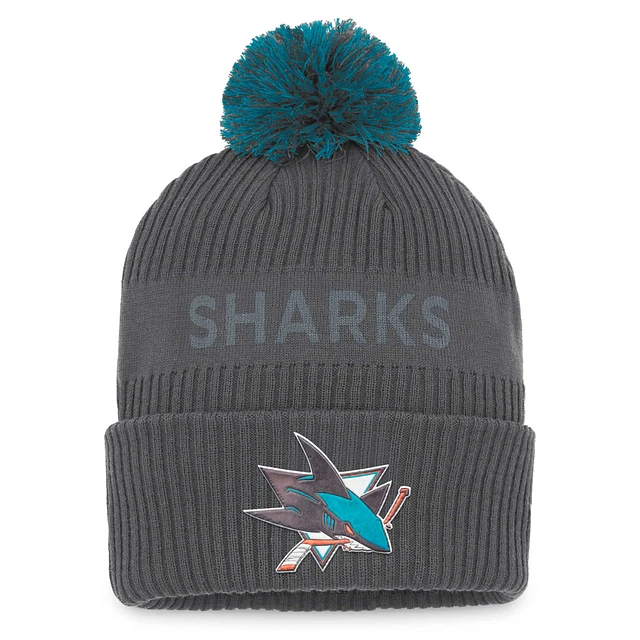 Men's Fanatics Charcoal San Jose Sharks Authentic Pro Home Ice Cuffed Knit Hat with Pom
