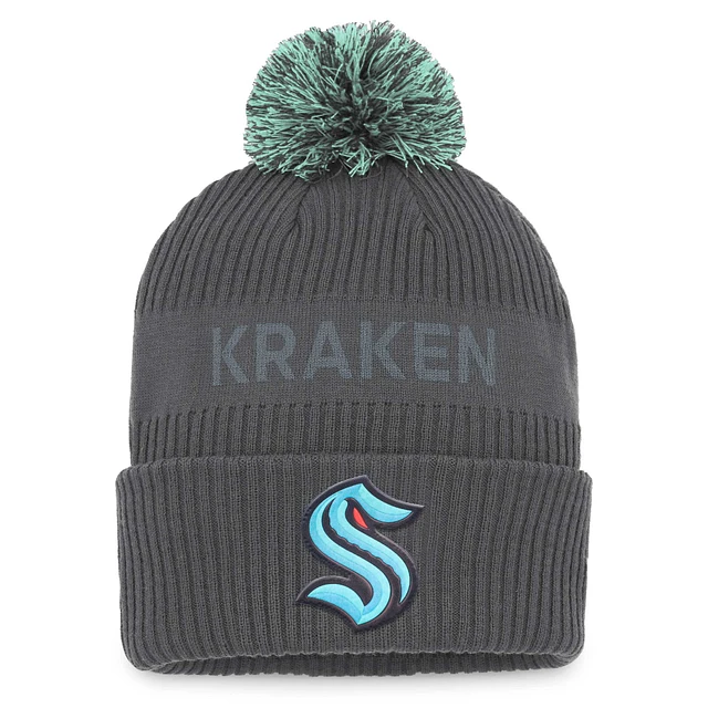 Men's Fanatics Charcoal Seattle Kraken Authentic Pro Home Ice Cuffed Knit Hat with Pom