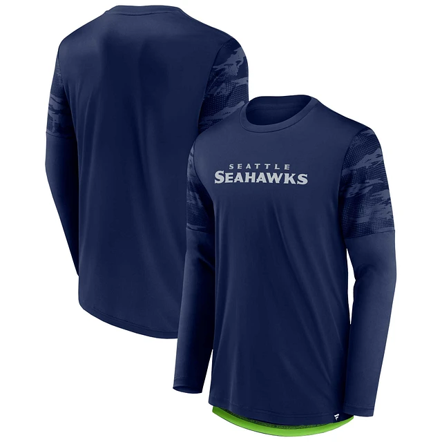 Men's Fanatics College Navy Seattle Seahawks Square Off Defender - Long Sleeve T-Shirt