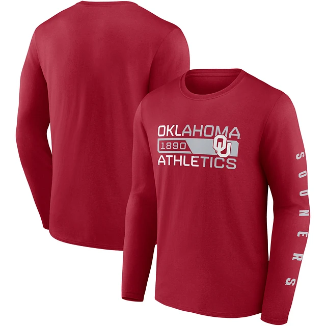 Men's Fanatics Crimson Oklahoma Sooners Broad Jump 2-Hit Long Sleeve T-Shirt