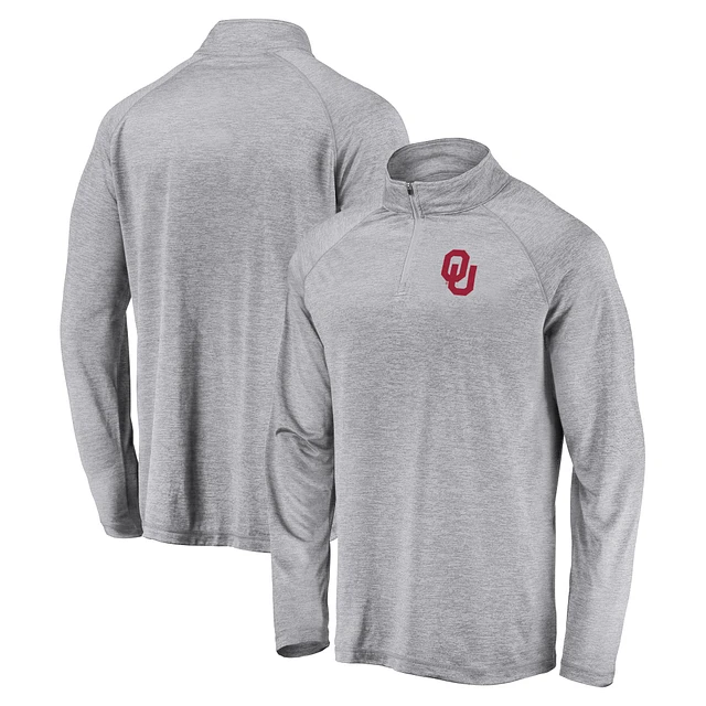 Men's Fanatics Gray Oklahoma Sooners Striated Raglan Lightweight Quarter-Zip Top