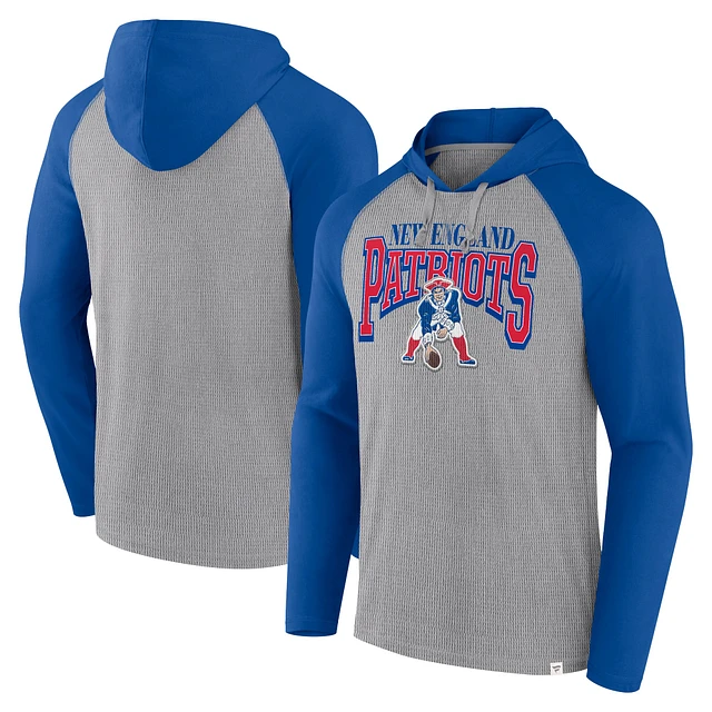 Men's Fanatics Gray/Royal New England Patriots Under Center Long Sleeve Hoodie T-Shirt