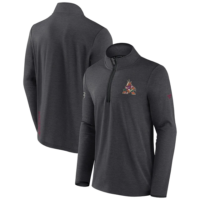 Men's Fanatics Heather Charcoal Arizona Coyotes Authentic Pro Rink Quarter-Zip Jacket