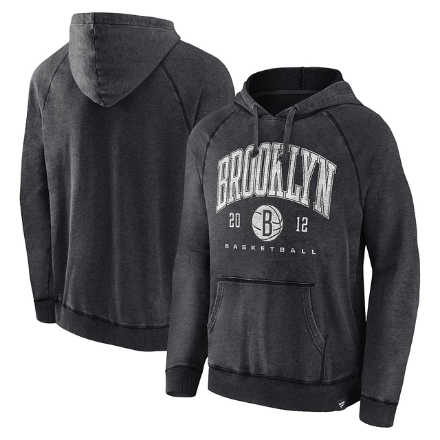 Men's Fanatics Heather Charcoal Brooklyn Nets Foul Trouble Snow Wash Raglan Pullover Hoodie