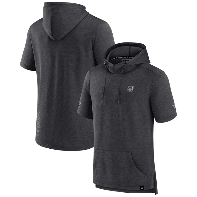 Men's Fanatics Heather Charcoal Los Angeles Kings Authentic Pro Short Sleeve Pullover Hoodie