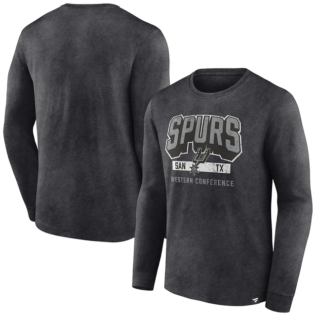 Men's Fanatics Heather Charcoal San Antonio Spurs Front Court Press Snow Wash Long Sleeve T-Shirt
