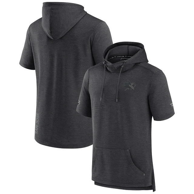 Men's Fanatics Heather Charcoal San Jose Sharks Authentic Pro Road Performance Short Sleeve Pullover Hoodie