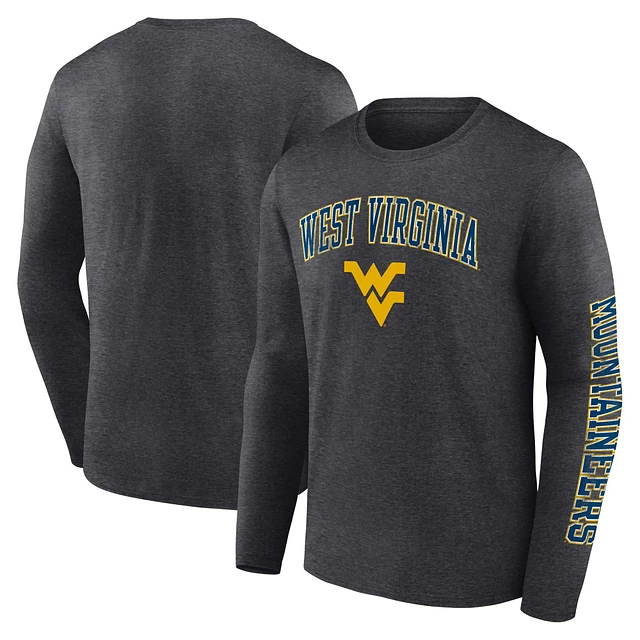 Men's Fanatics Heather Charcoal West Virginia Mountaineers Distressed Arch Over Logo Long Sleeve T-Shirt