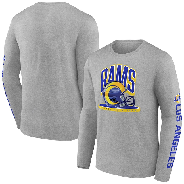 Men's Fanatics Heather Gray Los Angeles Rams Helmet Platform Long Sleeve T-Shirt