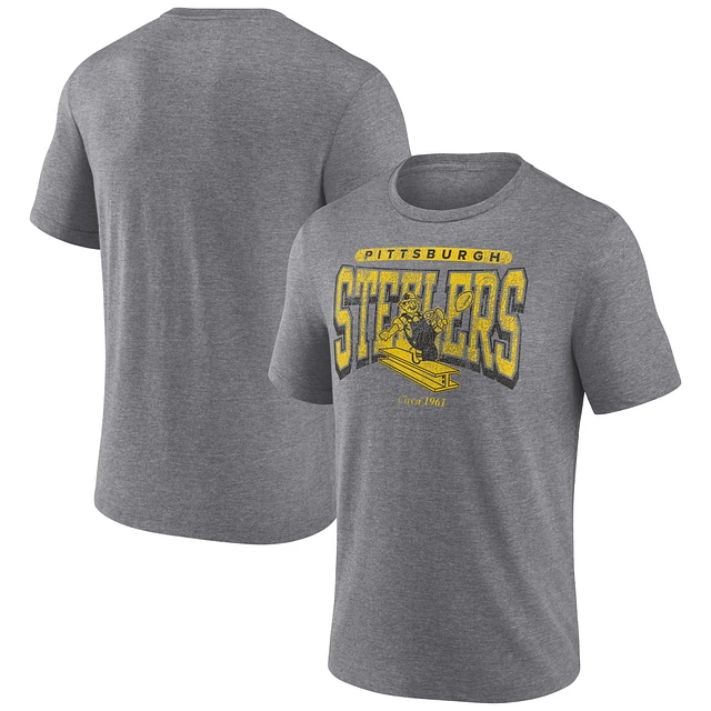 Men's Fanatics Heather Gray Pittsburgh Steelers First Down Tribute Tri-Blend T-Shirt