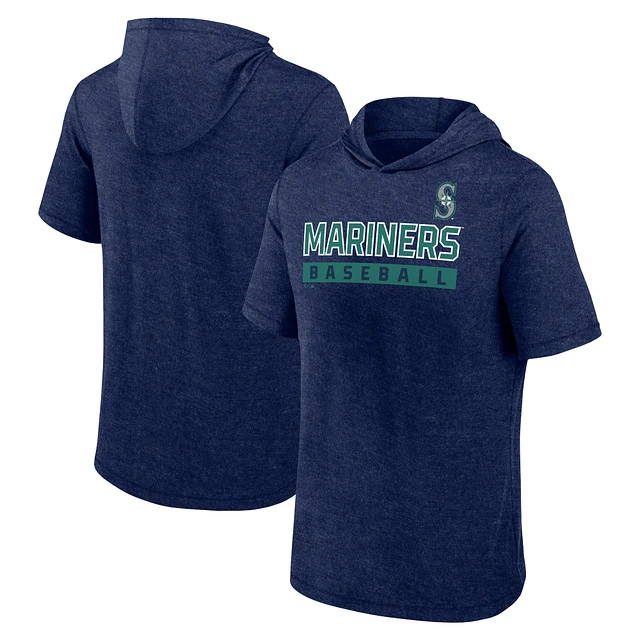 Men's Fanatics Heather Navy Seattle Mariners Push Short Sleeve Pullover Hoodie