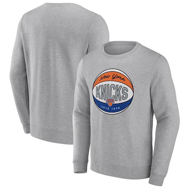 Men's Fanatics Heathered Gray New York Knicks True Classics Vint Pullover Sweatshirt