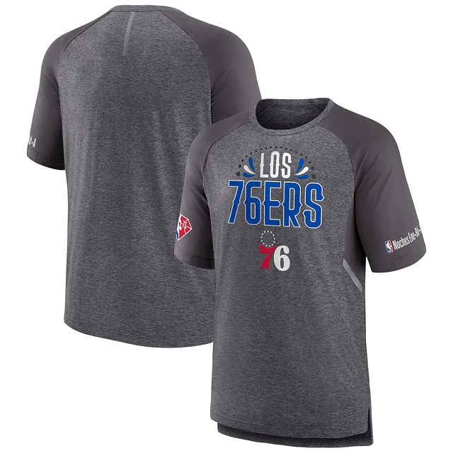 Men's Fanatics Heathered Gray Philadelphia 76ers 2022 Noches Ene-Be-A Core Shooting Raglan T-Shirt