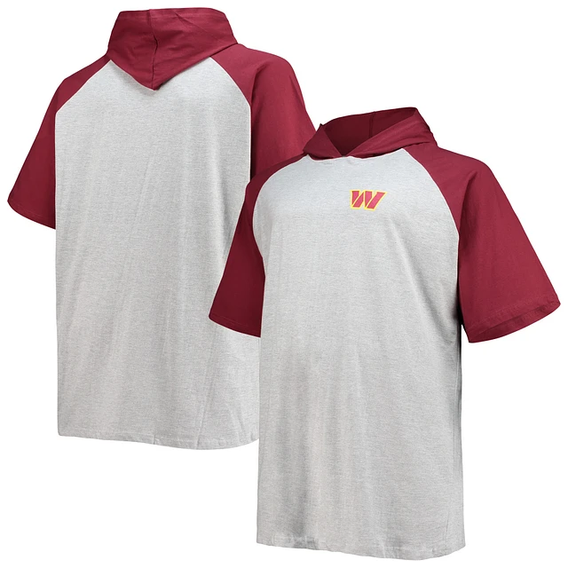 Men's Fanatics Heathered Gray/Burgundy Washington Commanders Big & Tall Raglan Pullover Short Sleeve Hoodie