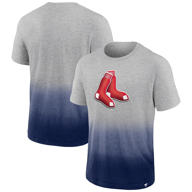 Men's Fanatics Heathered Gray/Heathered Navy Boston Red Sox Iconic Team Ombre Dip-Dye T-Shirt