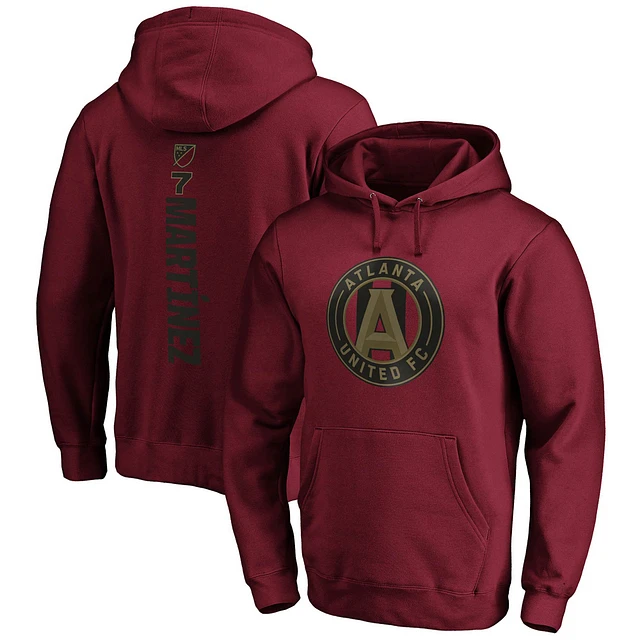Men's Fanatics Josef Martinez Red Atlanta United FC Playmaker Name and Number Fitted Pullover Hoodie