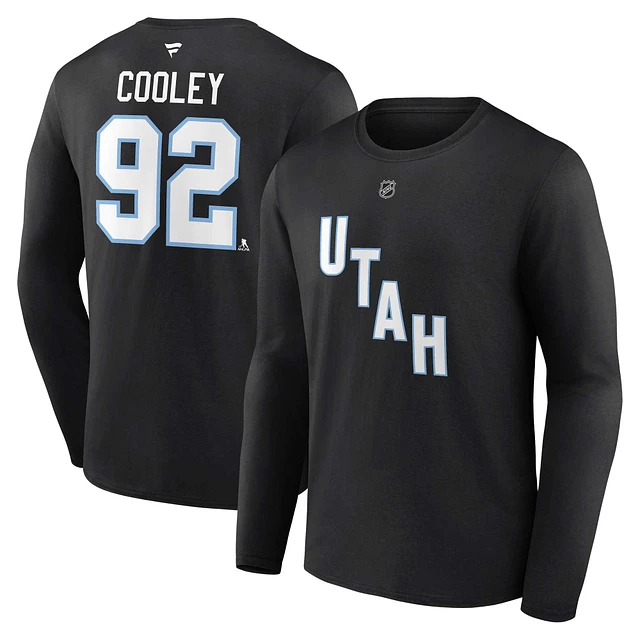 Men's Fanatics Logan Cooley Black Utah Hockey Club Authentic Stack Name & Number Long Sleeve T-Shirt