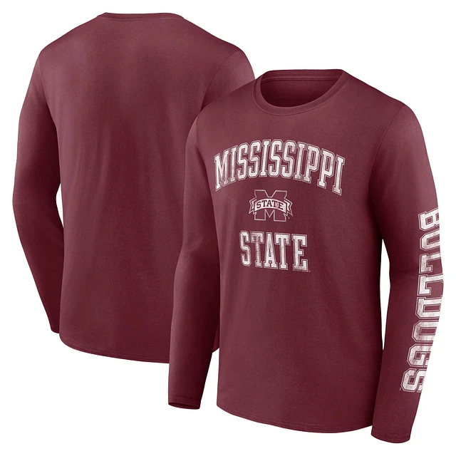 Men's Fanatics Maroon Mississippi State Bulldogs Distressed Arch Over Logo Long Sleeve T-Shirt