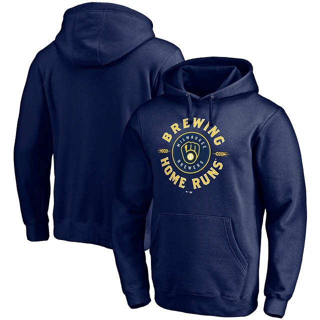 Men's Fanatics Navy Milwaukee Brewers Brewing Up Team Fitted Pullover Hoodie