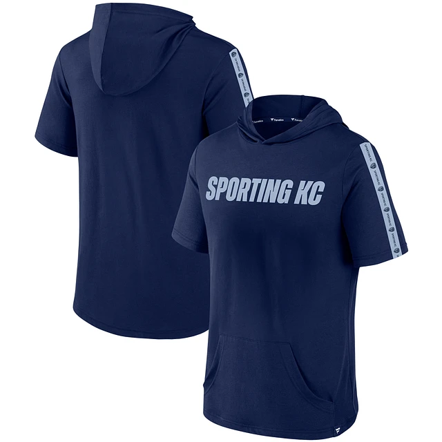 Men's Fanatics Navy Sporting Kansas City Definitive Victory Short-Sleeved Pullover Hoodie