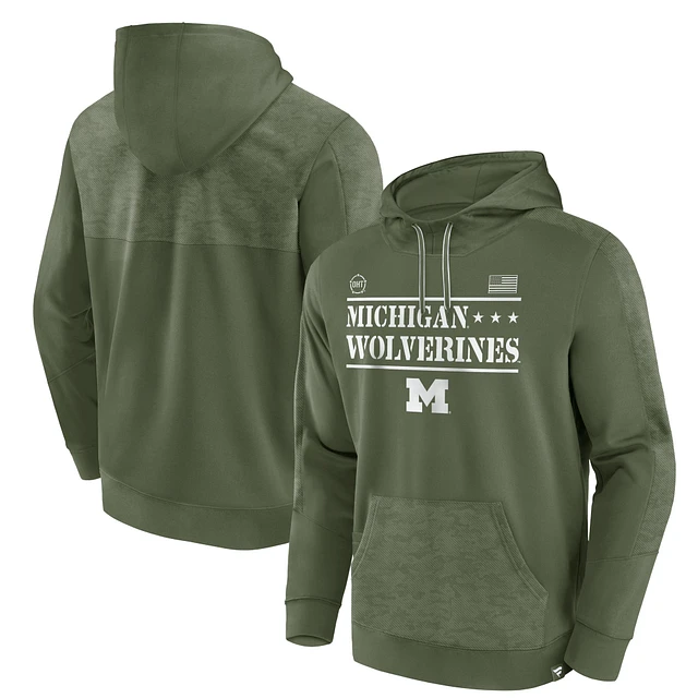 Men's Fanatics Olive Michigan Wolverines OHT Military Appreciation Stencil Pullover Hoodie