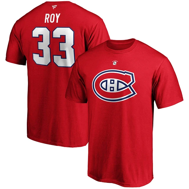 Men's Fanatics Patrick Roy Red Montreal Canadiens Authentic Stack Retired Player Name & Number - T-Shirt