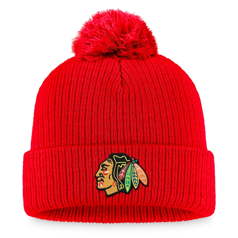 Men's Fanatics Red Chicago Blackhawks Primary Logo Cuffed Knit Hat with Pom