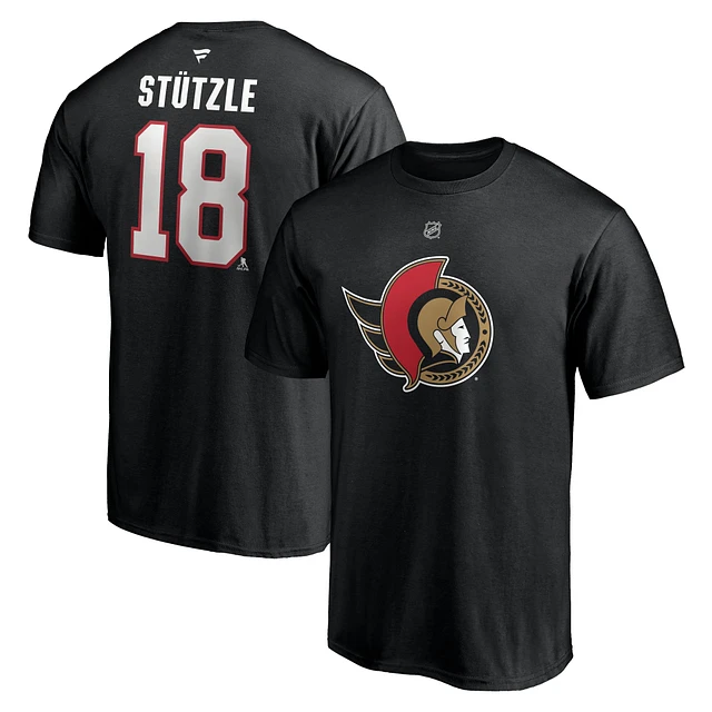 Men's Fanatics Tim Stutzle Black Ottawa Senators Authentic Stack Name & Number T-Shirt