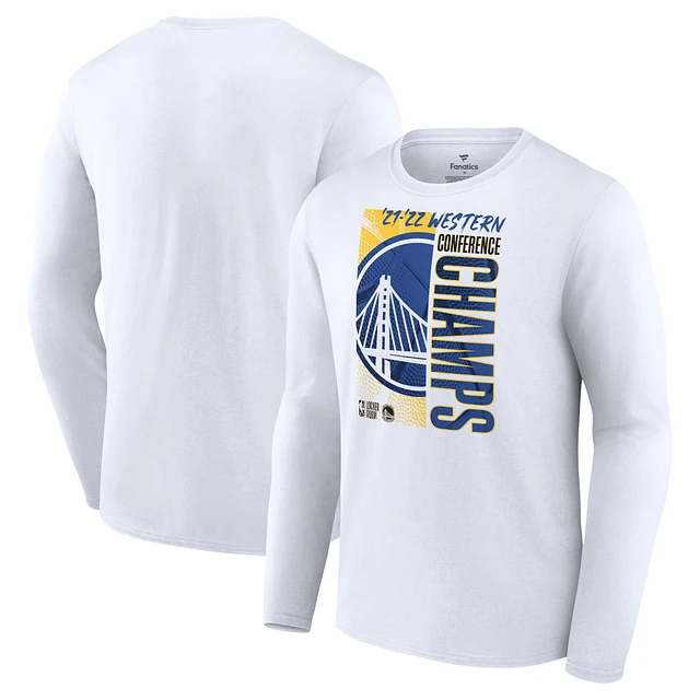 Men's Fanatics White Golden State Warriors 2022 Western Conference Champions Locker Room Long Sleeve T-Shirt