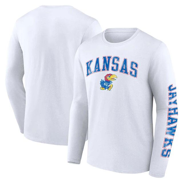 Men's Fanatics White Kansas Jayhawks Distressed Arch Over Logo Long Sleeve T-Shirt