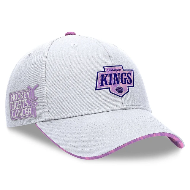 Men's Fanatics White Los Angeles Kings Authentic Pro Hockey Fights Cancer Adjustable Hat