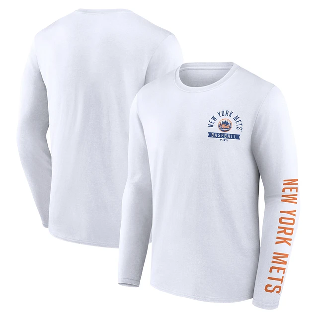 Men's Fanatics White New York Mets Pressbox Long Sleeve T-Shirt