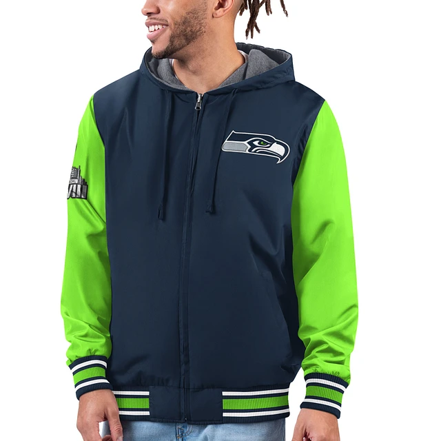 Men's G-III Sports by Carl Banks Navy/Neon Green Seattle Seahawks Commemorative Reversible Full-Zip Jacket