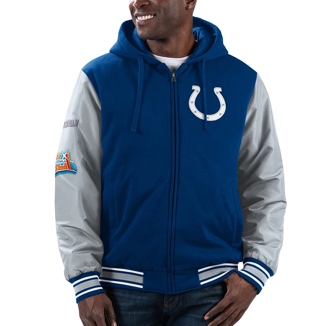 Men's G-III Sports by Carl Banks Royal/Gray Indianapolis Colts Player Option Full-Zip Hoodie