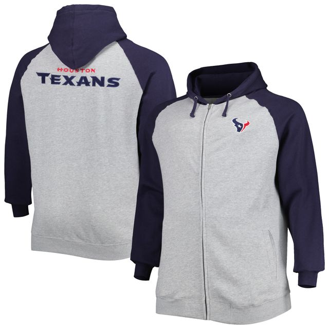 Men's Heather Gray Houston Texans Big & Tall Fleece Raglan Full-Zip Hoodie Jacket