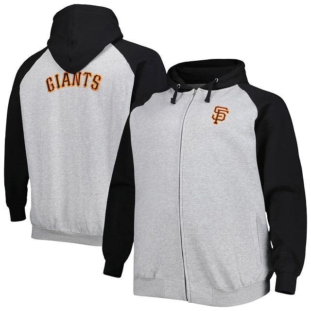 Men's Heather Gray/Black San Francisco Giants Big & Tall Raglan Hoodie Full-Zip Sweatshirt
