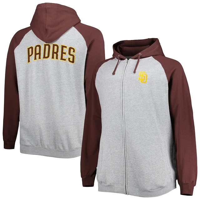 Men's Heather Gray/Brown San Diego Padres Big & Tall Raglan Hoodie Full-Zip Sweatshirt