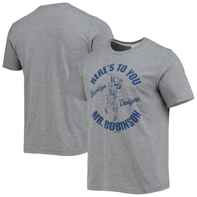 Men's Homage Jackie Robinson Gray Brooklyn Dodgers Cooperstown Collection Remix Jersey Tri-Blend T-Shirt