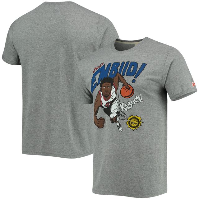 Men's Homage Joel Embiid Heathered Gray Philadelphia 76ers Comic Book Player Tri-Blend - T-Shirt